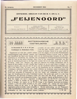 De Rotterdamsche Voetbal Bond R.V.B. bestaat dertig jaar, en dat kan niet onopgemerkt voorbij gaan natuurlijk. Verder wederom uitgebreide ‘officieele mededelingen’, Puck van Heel is enigszins onverwachts opgeroepen voor ‘het Zwaluwenelftal’ (??) om in Tilburg tegen Zuid-Afrika te voetballen. Pijl Lees verder